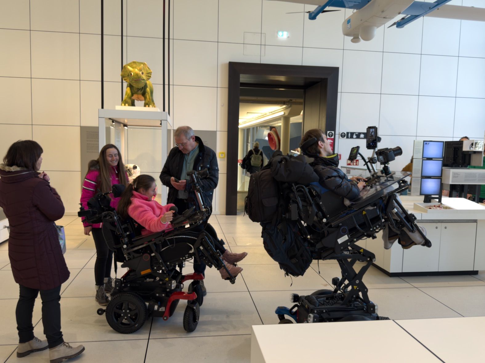 Durch die Themenbereiche Technik, Raumfahrt, Fotografie und Landwirtschaft kamen wir dank Barrierefreiheit des Deutschen Museums spielend mit den Rollis überall hin. Wo kein Aufzug zur Verfügung stand, konnten Dank stufenloser schräger Wege die verschiedenen Etagen erreicht werden.