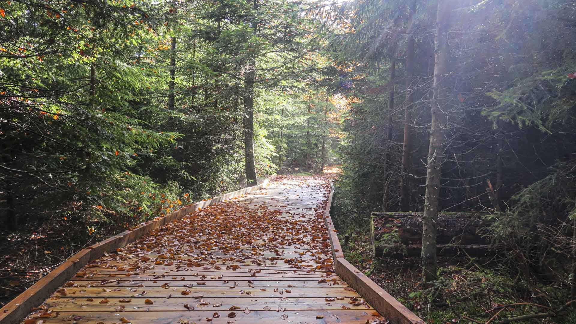 Knappe drei Wochen später waren wir wieder dort, Wir, das waren Dirk, Seba mit seinen Eltern und Helmut mit seinem Bruder Robert. Weil unser eigentlich geplanter Ausflug hinauf zum Dreisessel wetterbedingt nicht stattfinden konne, nahmen wir den Erlebnisweg Großer Filz gerne als Ersatz. Traumhaftes Herbstwetter, auch genannt "Altweibersommer" begleitete uns während unserer Exkursion. Schön war, dass Dirk sich auch die Zeit dafür nehmen konnte uns zu begleiten. Er wird immer Mitglied der Rolli-Cam-Gemeinschaft bleiben.