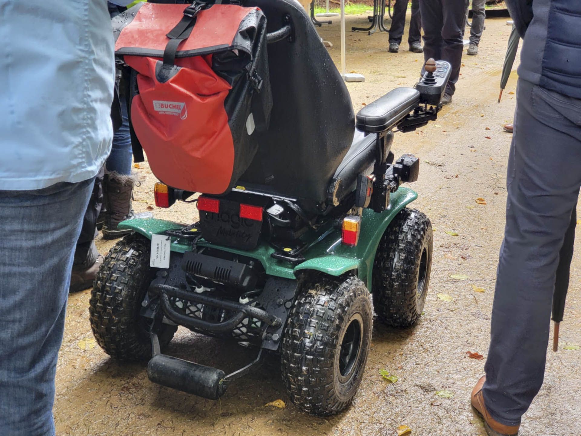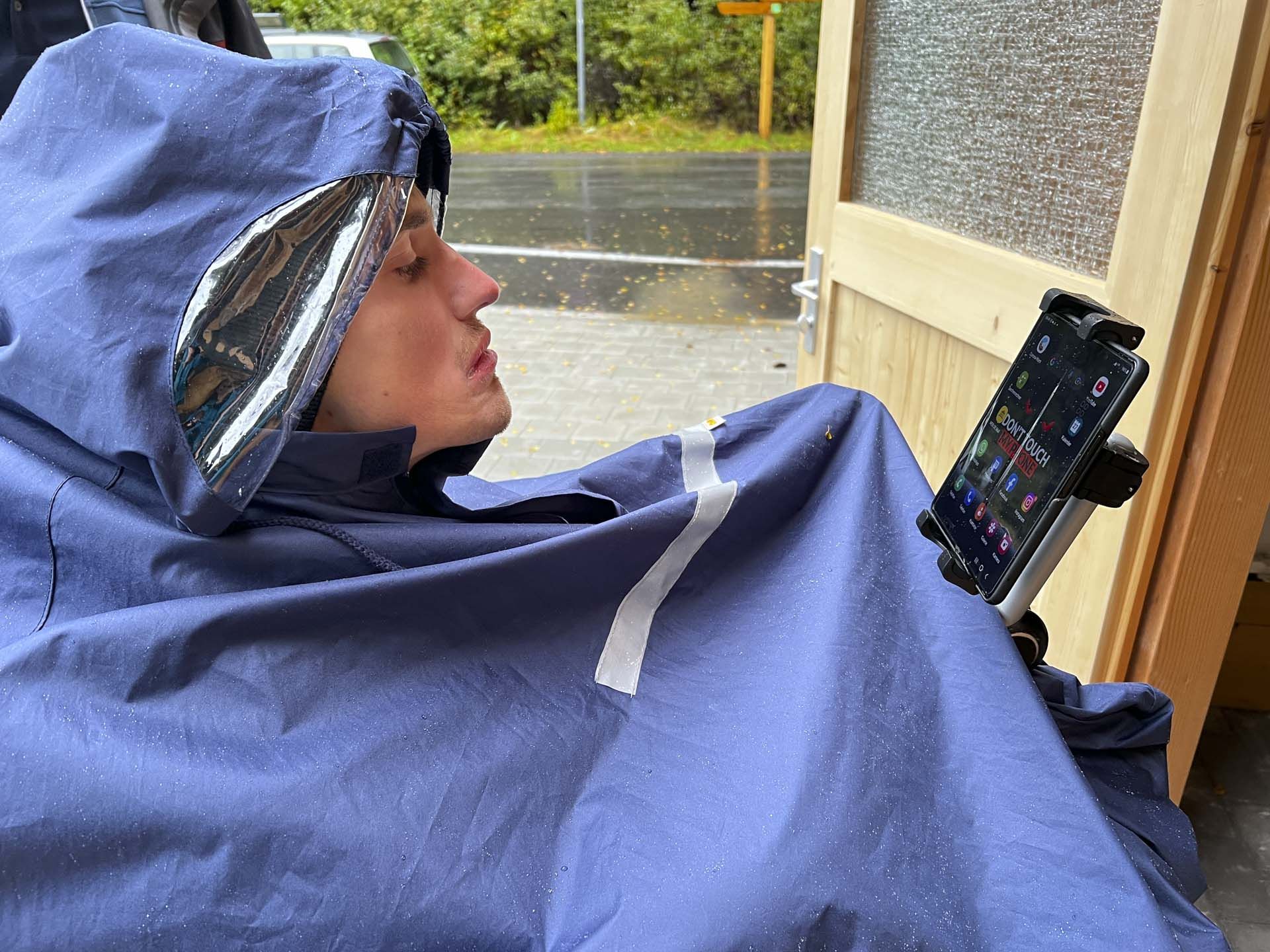 Wir waren seitens der Nationalparkverwaltung zur offiziellen Eröffnung dieses barrierearmen Rundwegs eingeladen. Seba und ich haben die Einladung gerne angenommen. Begleitet von seinem Papa und mit einem sehr großen "Friesennerz/ Pocho" ausgestattet fotografierte er an diesem doch sehr verrregneten Tag vorsorglich mit seinem wasserdichten Smartphone. Wir Fußgänger bekamen alle einen Regenschirm gegen die Wassermassen, die auf uns niederprasselten. Die neuen Holzbohlen auf dem Steg waren durch die Nässe und Laub doch ein wenig rutschig, trotzdem ist niemand ernsthaft ausgerutscht.