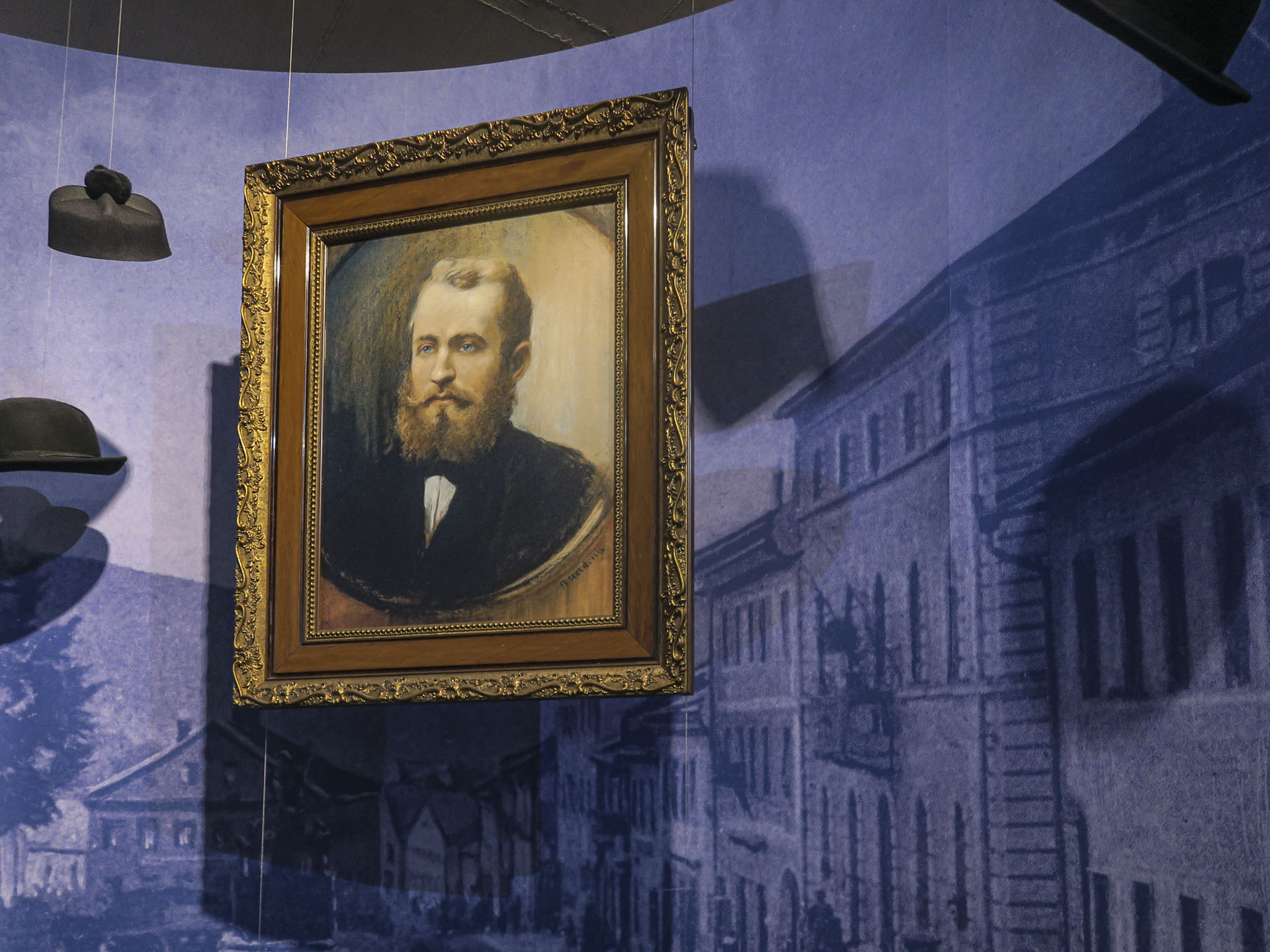 Der Weg zum Aufzug ist geprägt von einem Blindenleitsystem im Fußboden. Auf allen Bildern sind zweisprachig die Erläuterungen in Braille-Schrift zusätzlich zur Bildbeschreibung zu "lesen". QR-Codes öffnen zusätzlich die Vorlesefunktion und machen so alle Bilder und Räume hörbar.