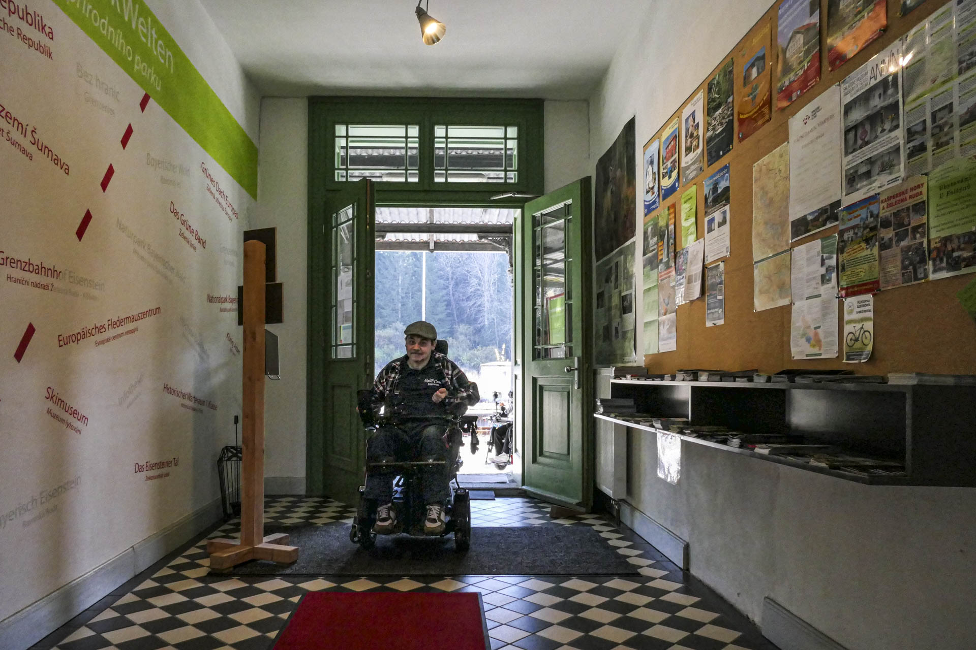 Seba fotografierte Helmut und Julia wie sie mit ihren E-Rollis durch den Haupteingang direkt am Bahnsteig in den Grenzbahnhof einfuhren, Dieter hielt die Szene in einem kurzen Video fest.