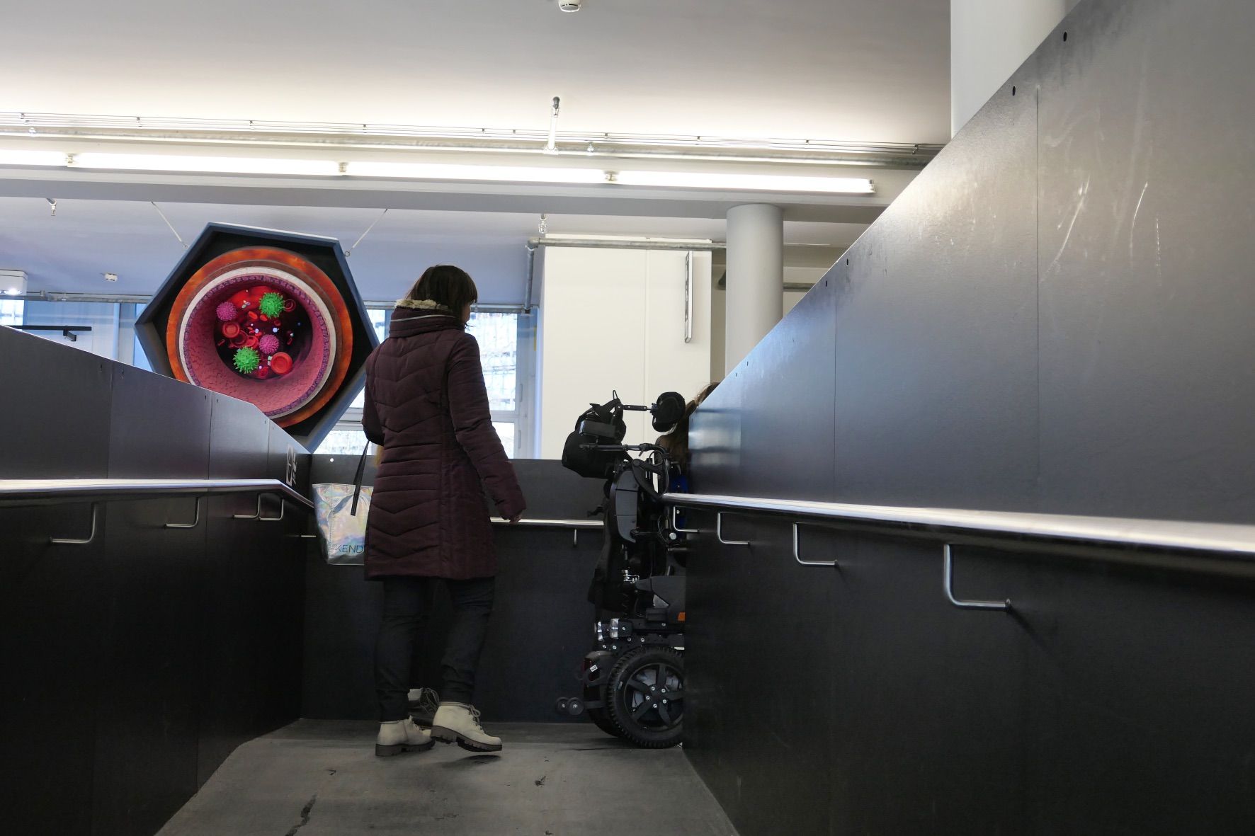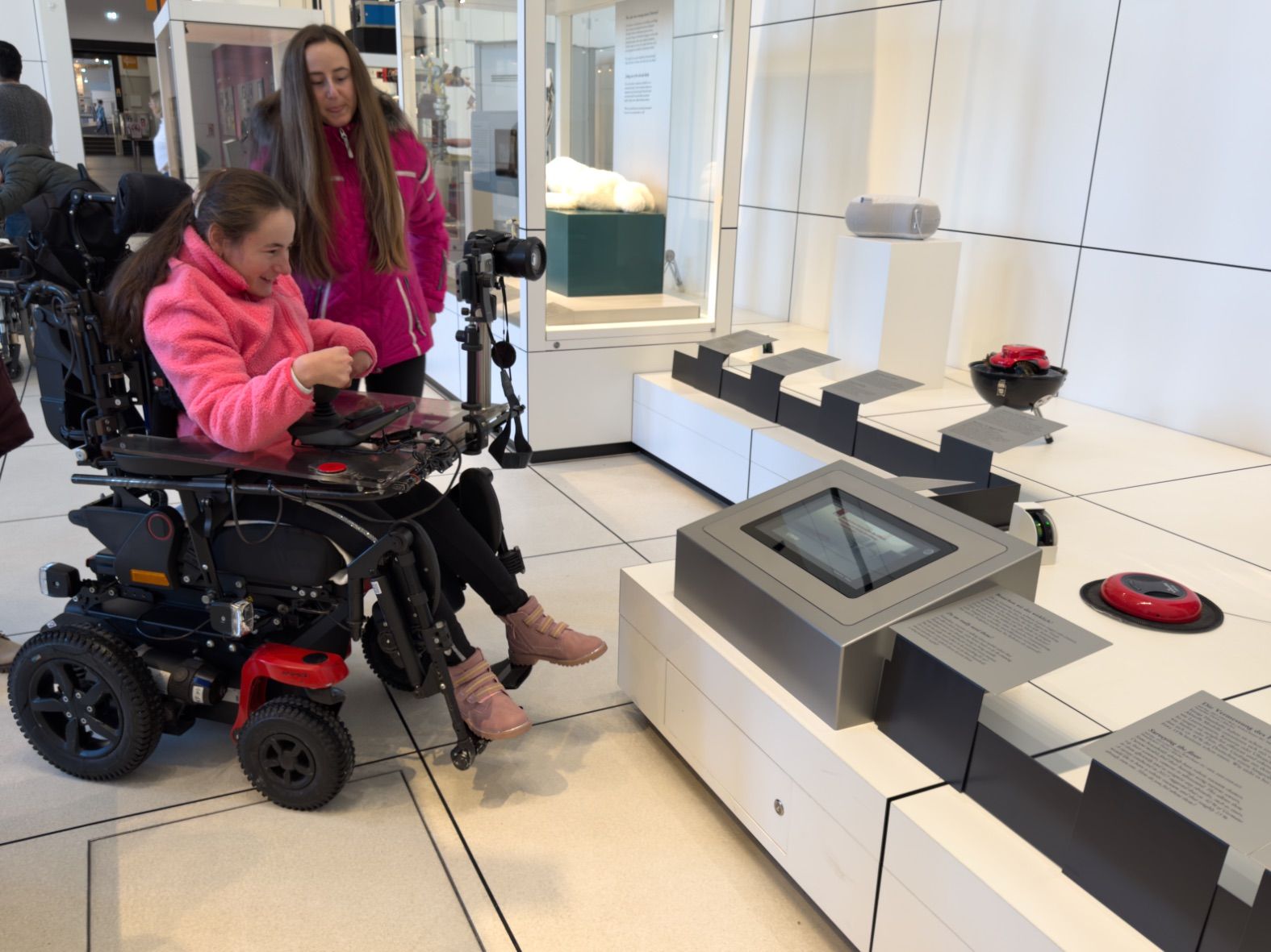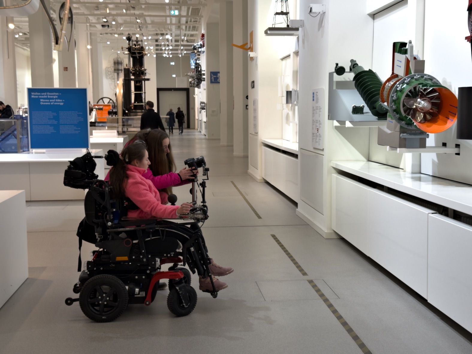 Durch die Themenbereiche Technik, Raumfahrt, Fotografie und Landwirtschaft kamen wir dank Barrierefreiheit des Deutschen Museums spielend mit den Rollis überall hin. Wo kein Aufzug zur Verfügung stand, konnten Dank stufenloser schräger Wege die verschiedenen Etagen erreicht werden.